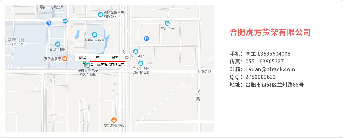 - 合肥虎方貨架有限公司從事經(jīng)營倉儲貨架、物流周轉(zhuǎn)及搬運設(shè)備、倉庫管理系統(tǒng)等相關(guān)產(chǎn)品的生產(chǎn)、銷售、設(shè)計、安裝及采購集成服務(wù)。 公司主要產(chǎn)品:貨位式貨架、倉儲重型貨架、擱板式貨架、閣樓式貨架、駛?cè)胧截浖?、鋼平臺貨架、穿梭式...